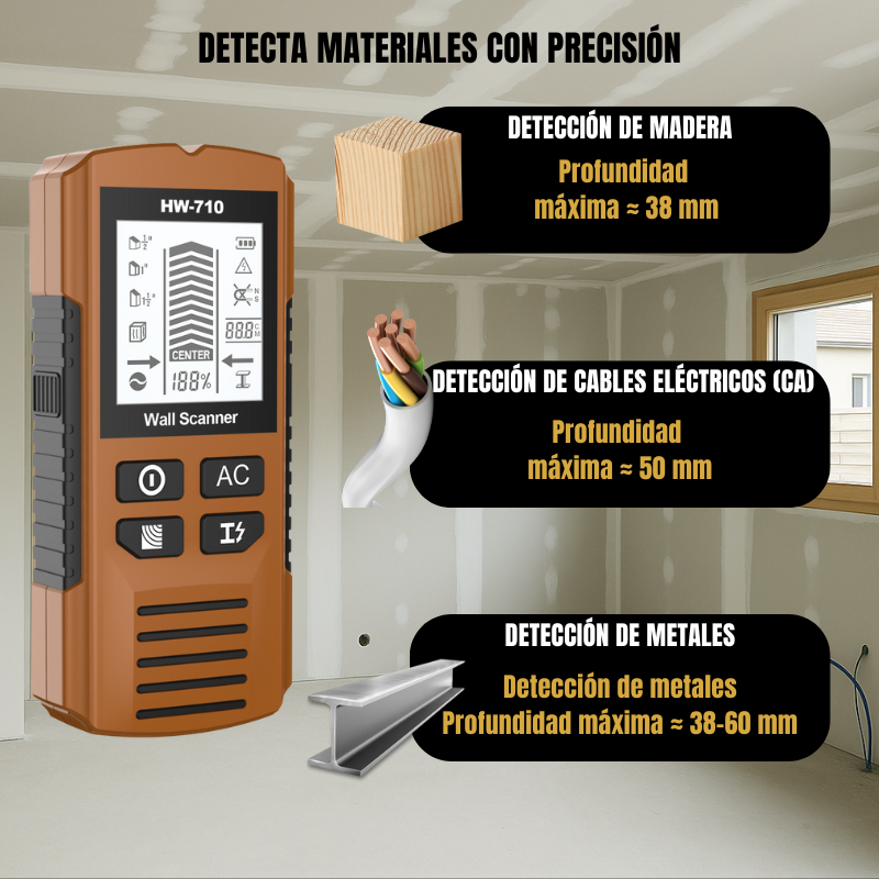 Detecta con precisión tuberías, cables eléctricos y metales ocultos.